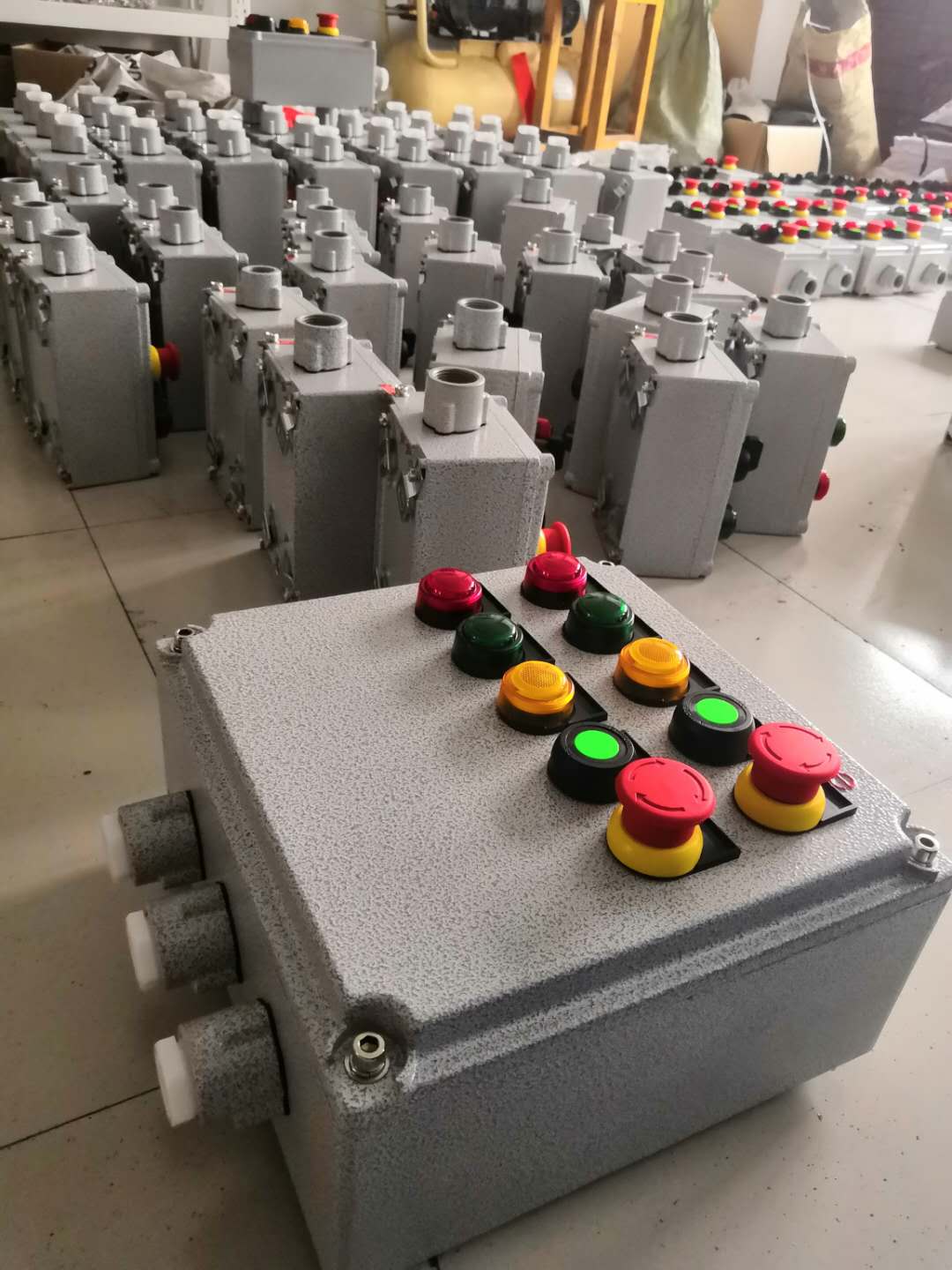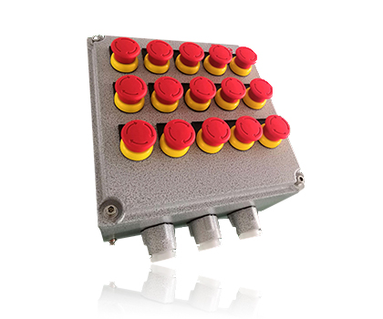 圖例是由15個急停按鈕組成的防爆操作柱